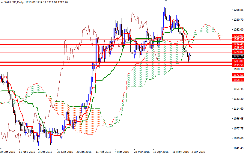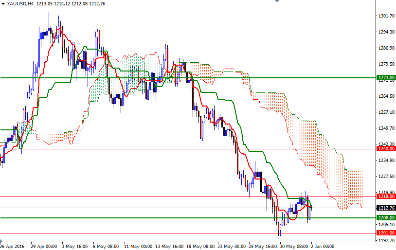 Gold prices settled slightly lower yesterday after shuffling between gains and losses as investors weighed fresh U.S. economic data. The XAU/USD pair initially tried to break out to the upside but the expected resistance at around 1218 kicked in and capped the market, dragging it back to the support at 1208. In economic news on Wednesday, the Institute for Supply Management's manufacturing index came in at 51.3, up from the previous month's 50.8 and above expectations for a reading of 50.5. "Tight labor markets" are pushing up wages, the Federal Reserve said in its latest Beige Book.