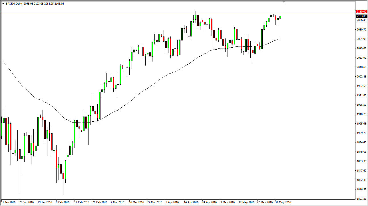 The S&P 500 initially fell during the day on Thursday, but turned right back around to form a hammer. The hammer is the same as we saq on Tuesday and Wednesday, so it's more than likely the buyers will come back into the market. If we pullback from here, it’s more than likely that it will be perceived that the market is offering value, and with that being the case more and more people will be attracted to this market. If we can break above the 2110 level, the market should continue to go higher on a “buy-and-hold” type of situation. The 50 day moving average below should continue to be supportive as well.