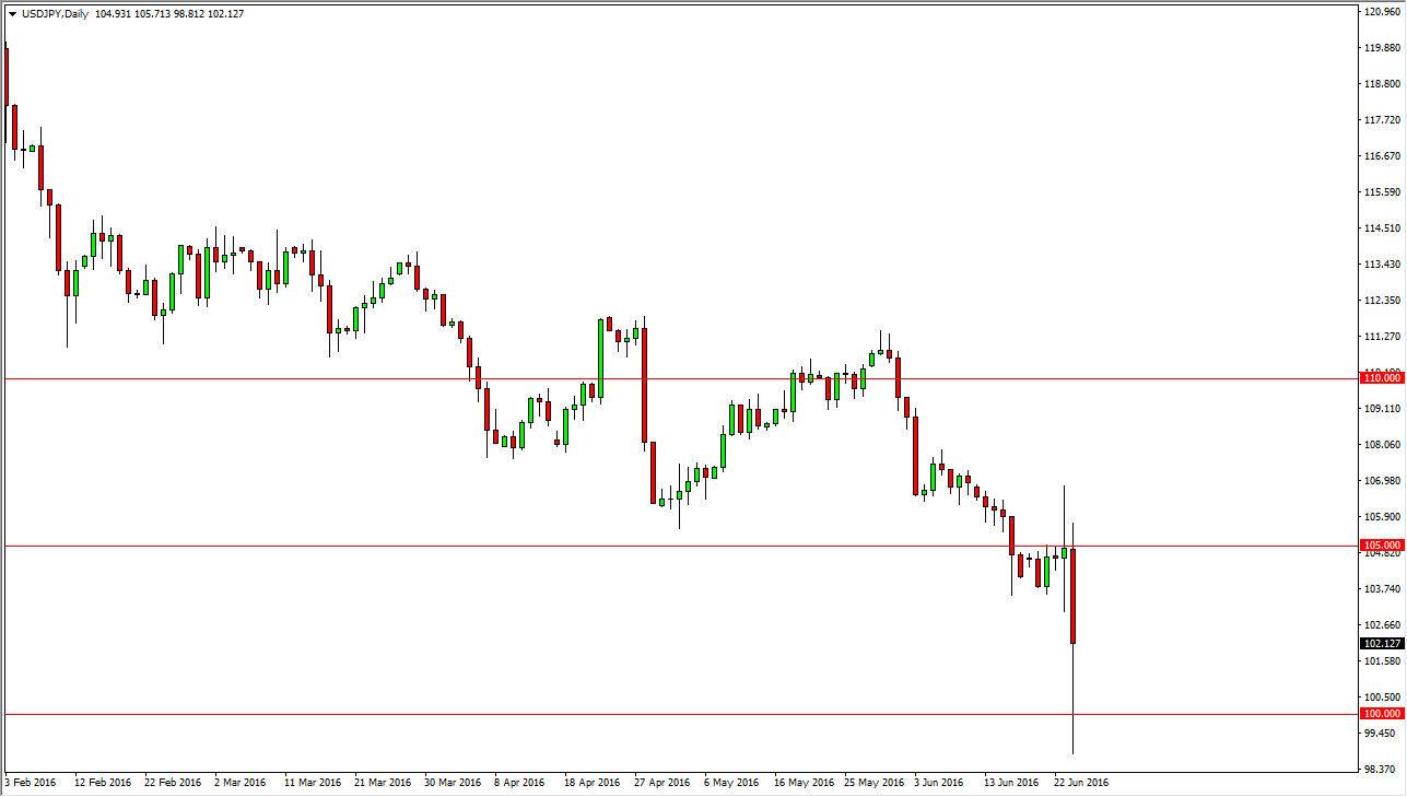 The USD/JPY pair fell significantly during the course of the day on Friday as we ended up slicing through the 100 level at one point in time. Because of this, it looks as if this market is very negative, but we did get a significant bounce. The question is whether or not the Bank of Japan had anything to do with it. After all, the Swiss National Bank did in fact get involved to stabilize the Swiss franc, so it is possible that the Japanese did the same with their own currency. Looking at this chart, it’s obvious that there was a bit of a “risk off” move during the day on Friday as the United Kingdom left the European Union. Ultimately, this market is still fairly negative in my opinion, but I’m looking for short-term selling opportunities, and not long-term ones. Exhaustive candles on short-term charts should be selling opportunities.