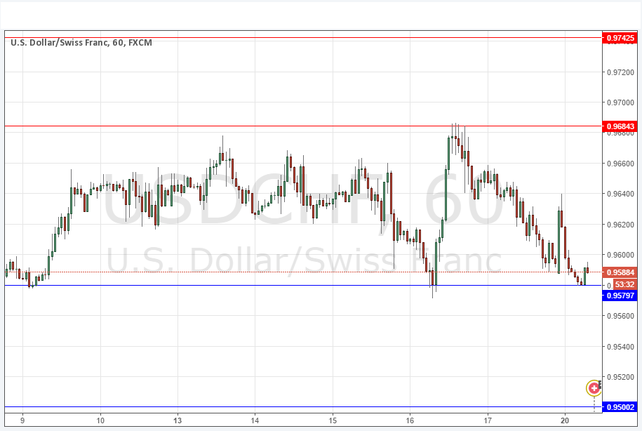 Last Thursday’s signals narrowly missed triggering a short trade as the resistance level at 0.9688 was missed by just a few pips.