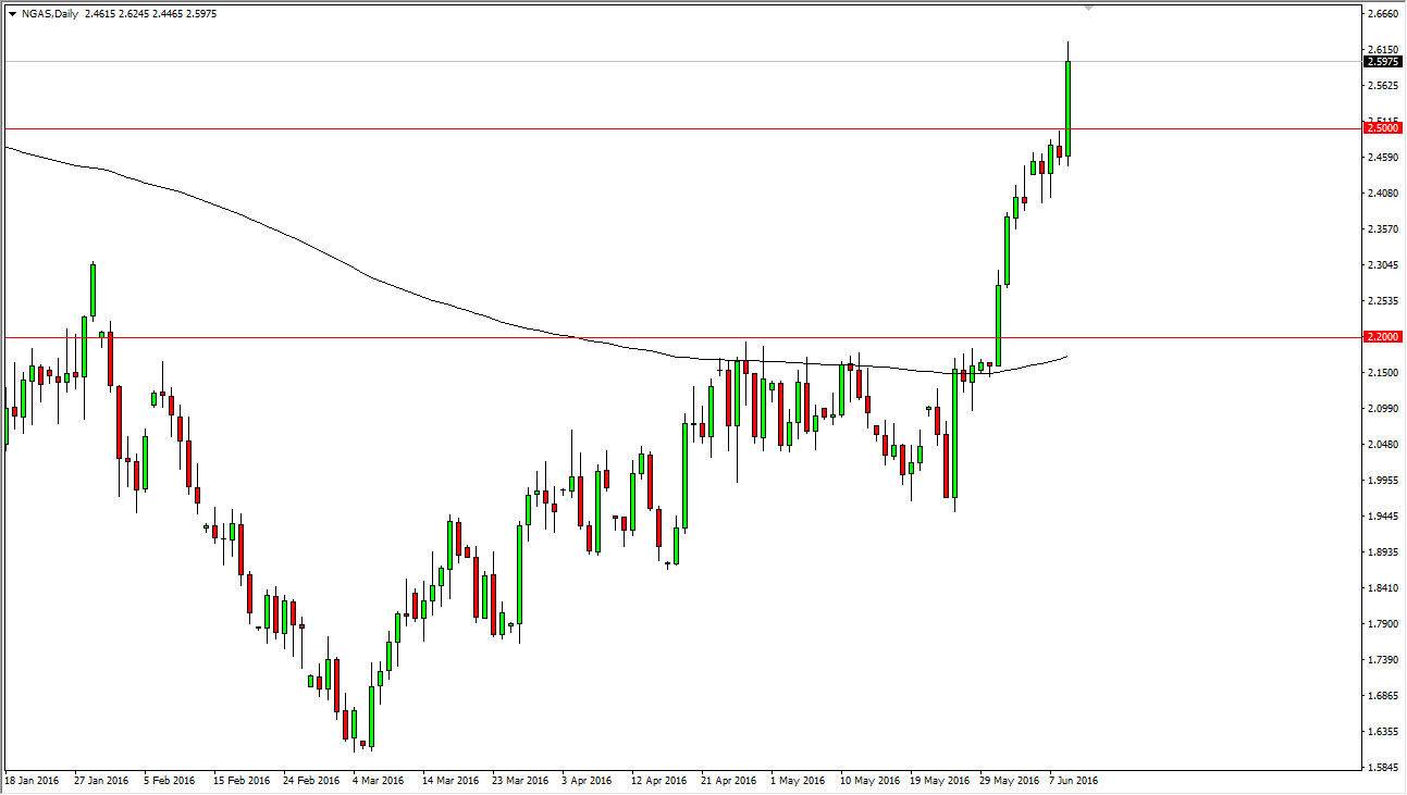 Brent markets broke higher during the course of the day on Thursday, clearing the $2.50 level significantly. In fact, we even touched the $2.60 level, and as a result it looks like the market is ready to continue a longer-term to the upside. However, I believe that we will have to pullback in order to build up momentum, and that means that we will probably drop towards the $2.50 level.