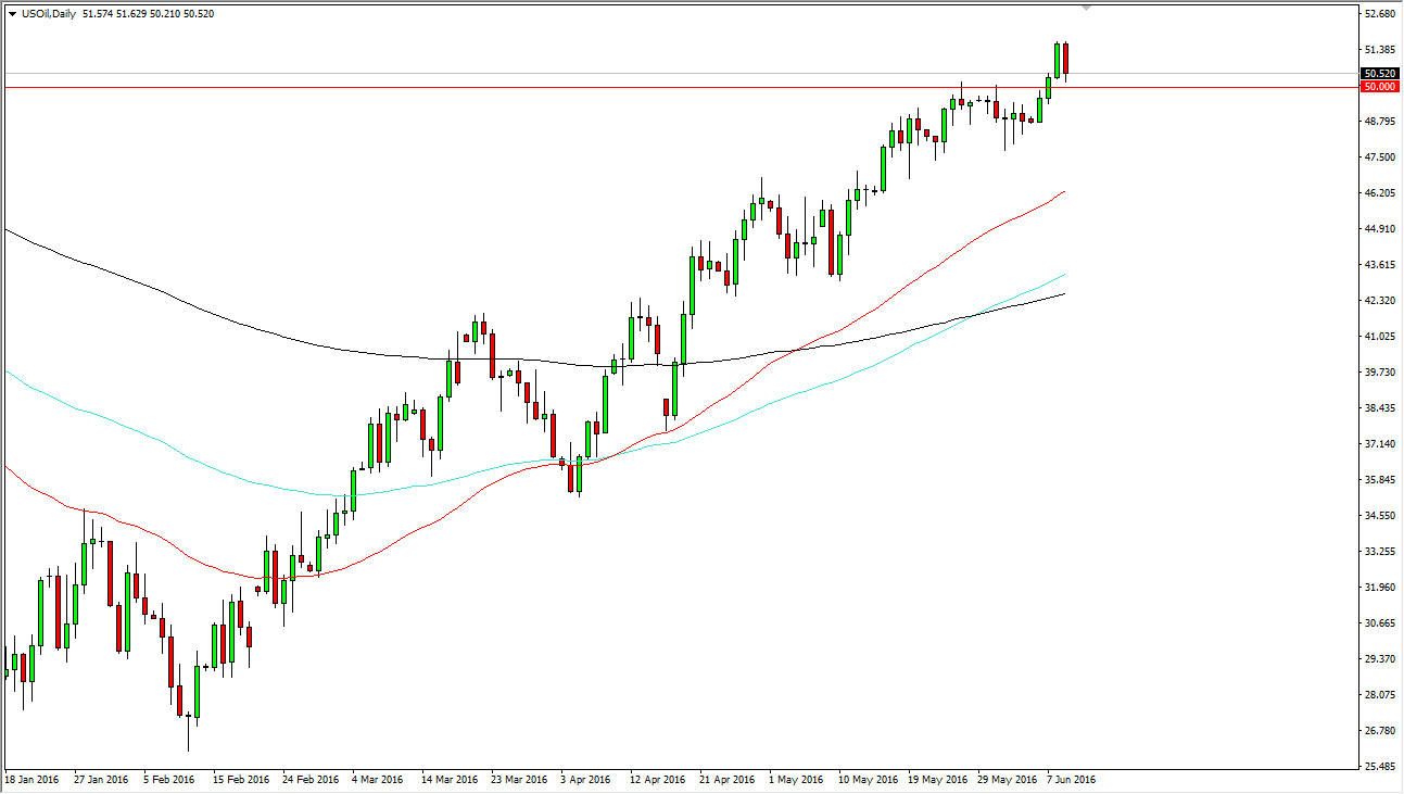 The WTI Crude Oil markets fell during the course of the session on Thursday, testing the $50 level for support. This was an area that previously had offered quite a bit of resistance, so having said that it makes sense that it offers support. When you look at the exponential moving averages, you can see that the 50 and the 100 day exponential moving averages are above the 100 day exponential moving average, so without it appears that the longer-term trend is on now. I think any type of supportive candle in this region is reason enough to start buying, and believe that the support runs all the way down to the $48 level for that matter.