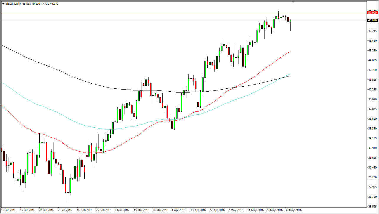 The WTI Crude Oil market initially fell on Wednesday but turned right back around to form a bit of a hammer. That of course is a very bullish sign, and I think that it shows that we are simply trying to build up momentum to finally break above the $50 handle. If we get that move, this market could very well enter a longer-term “buy-and-hold” situation on even higher time frames. On the chart, you can see that I have a black moving average which is the 200 day exponential moving average, which recently has been cross by both the 50 and the 100 day moving averages. This shows that we are trying to make a significant move higher from the longer-term perspective, and at this point in time I have no understand selling.