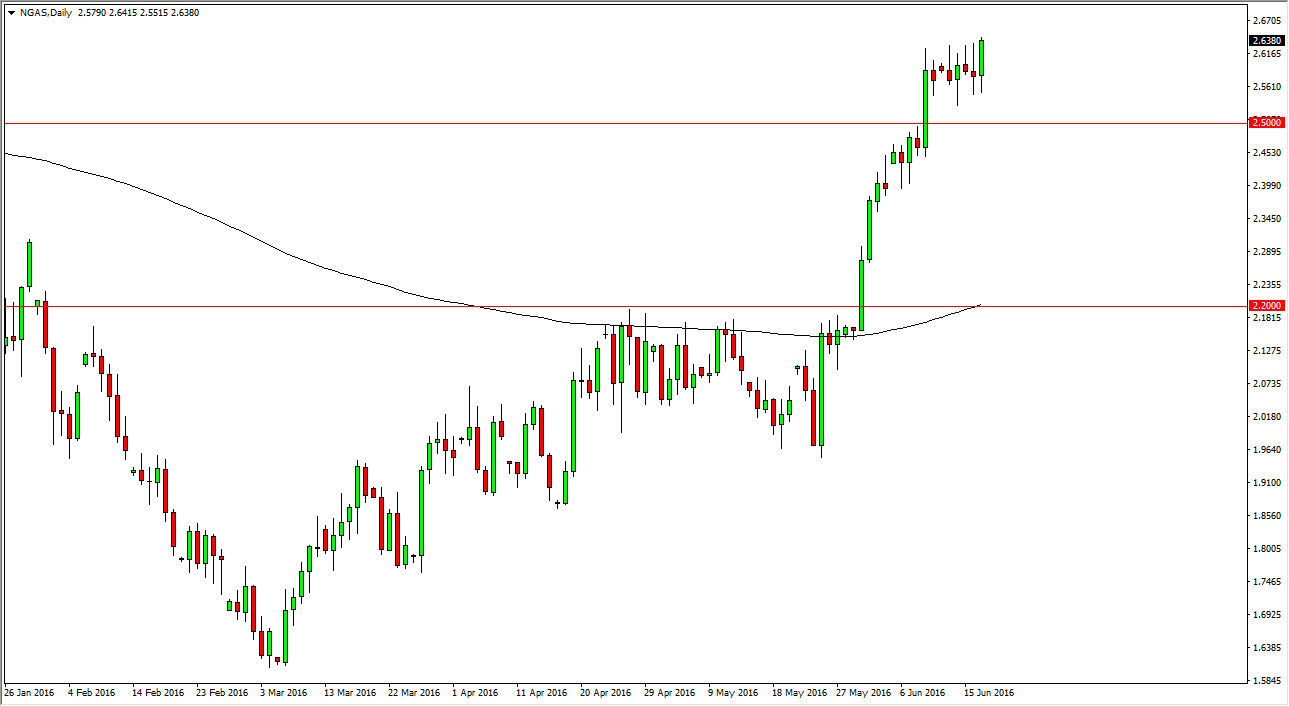 A break above the top of the candle for the Friday session could be a buying opportunity as well, as the market should then reach towards the $2.75 level. Ultimately, this is a market that should continue to go higher regardless, and it’s not unless we break below the $2.40 level that I would consider selling, and at that point in time it would only be a selling opportunity for the short-term. At this point time, it looks as if the market is going to continue to go much higher.
