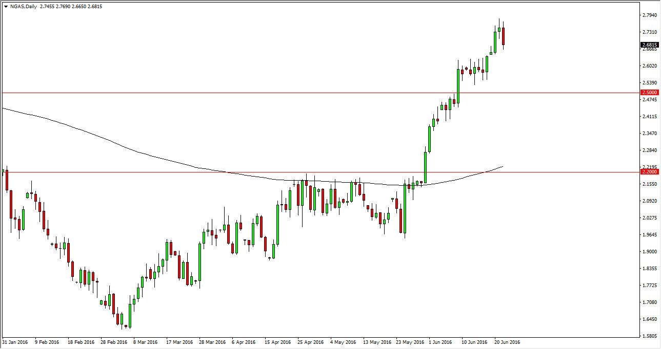 The fact that we are closing at the very bottom of the range for the session suggests that the market could see quite a bit of pressure today, but I don’t think we are going to completely break down. This is more or less is a pullback that gives us an opportunity to find value in a market that has certainly been very bullish lately. This is a market that doesn’t offer selling opportunities until we get below the $2.40 level.