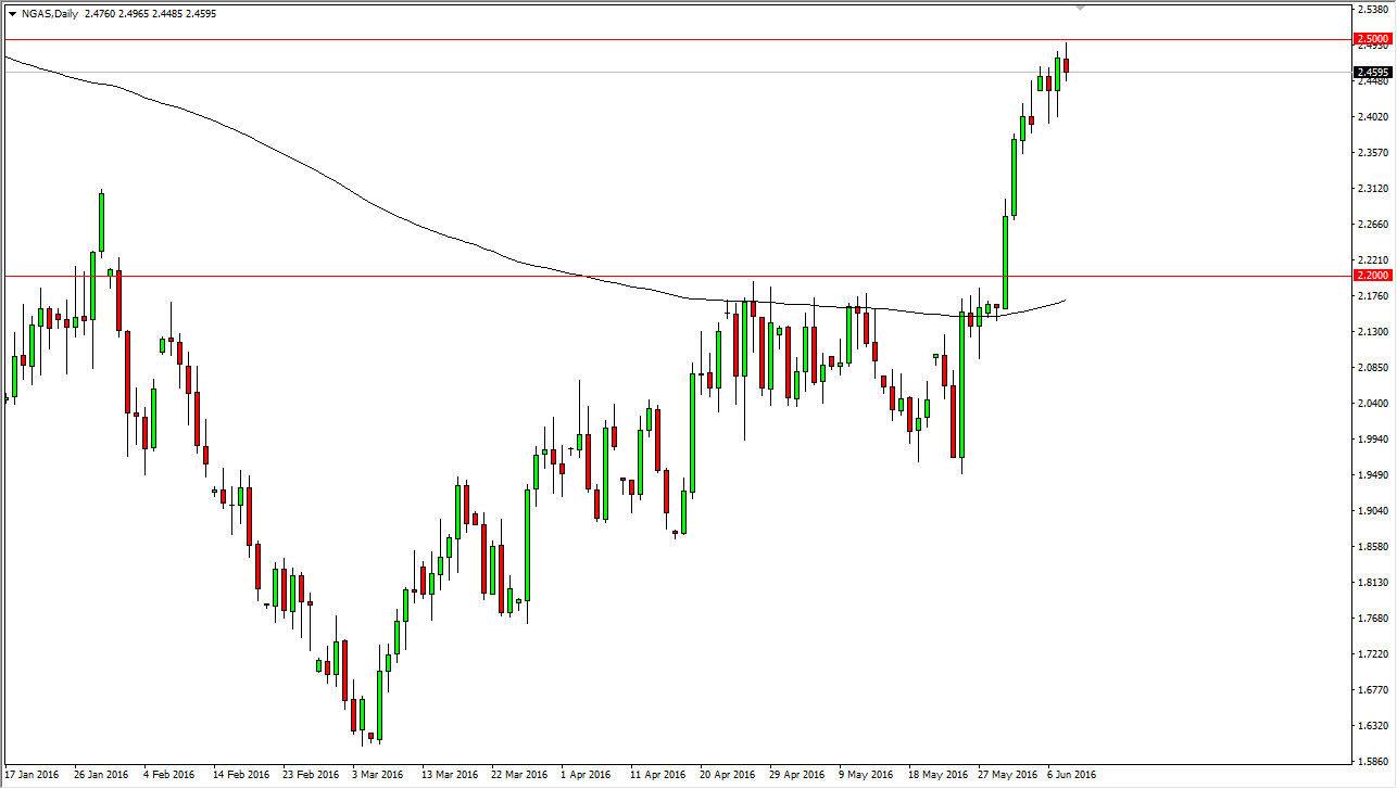 The natural gas markets test of the $2.50 level during the day on Wednesday but failed. We ended up turning around in forming a bit of a shooting star which of course is a slightly negative signal, but at the end of the day we have so much in the way of support just below that it’s not until we break down below the $2.40 level on a daily close that I would consider selling this contract right now. After all, we have seen quite a bit of bullish pressure and at this point in time I believe that there still will be quite a bit of buying interest when it comes and natural gas.