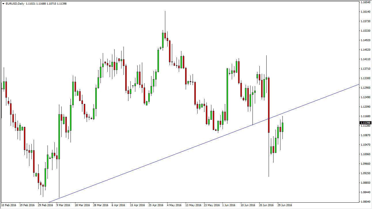 The EUR/USD pair had a fairly volatile day on Friday, but did end up forming a positive candle. At the moment, we are testing the bottom of an uptrend line that had previously been very important. Because of this, we could get a little bit of resistance but at this point in time I think the one thing you can count on more than anything else in this pair: volatility. I do not like buying the Euro at this point, I think there are far too many reasons to think that there could be trouble down the road, so I’m waiting to see whether or not we get an exhaustive candle. We do, I will not hesitate to sell this pair. It makes quite a bit of sense that the US dollar will strengthen over the longer term, because quite frankly the only real concern with the US dollar is that there will be any interest-rate hikes soon.
