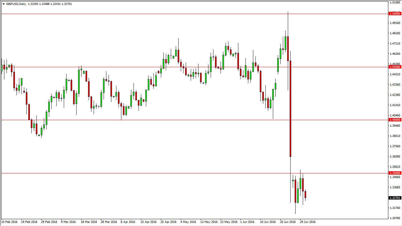 The British pound fell again during the day on Friday, but quite frankly it was a very quiet day. This is exactly what this currency needs, and it appears that we are trying to figure out what happens next. There is a gap above, which starts at the 1.35 level and ends of the 1.3650 handle roughly. That has not been filled, so would not surprise me at all to see this market tried to do that, and as a result I would expect some type of rally fairly soon. However, I do not believe that the British pound is going to strengthen significantly. I believe that any rally at this point in time will more than likely offer a selling opportunity given enough patience, and I will look for exhaustive candles above in order to start shorting the British pound again. I believe that the relative safety of the US dollar should continue to be attractive as well.