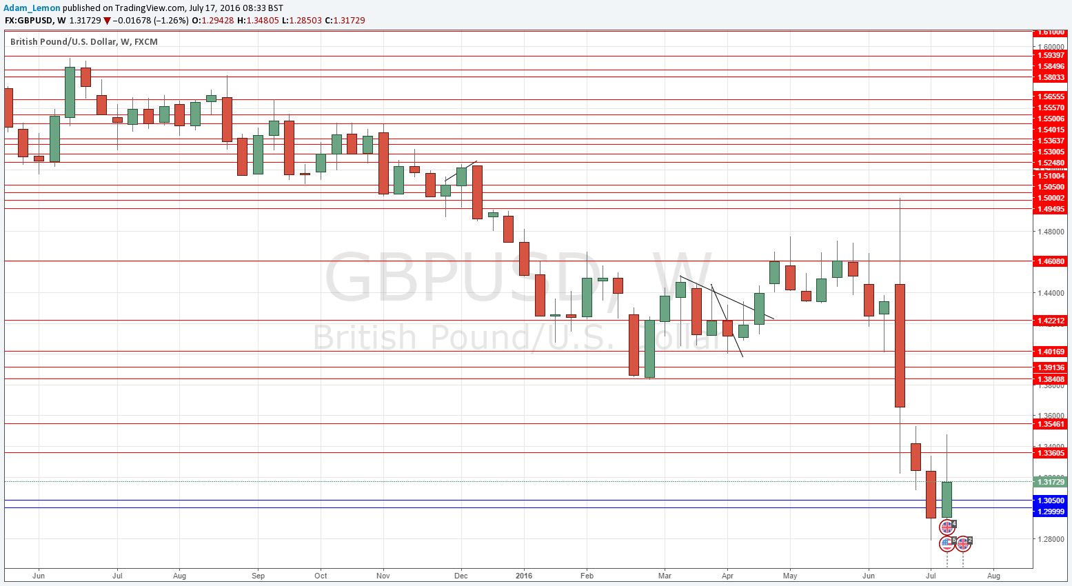 The British Pound is down sharply over the past few weeks and months, and on Friday resumed its fall. The more likely a Brexit is to be implemented, the greater the chance that the GBP will fall further, and it is looking as if the new Government will indeed press ahead with a British exit.