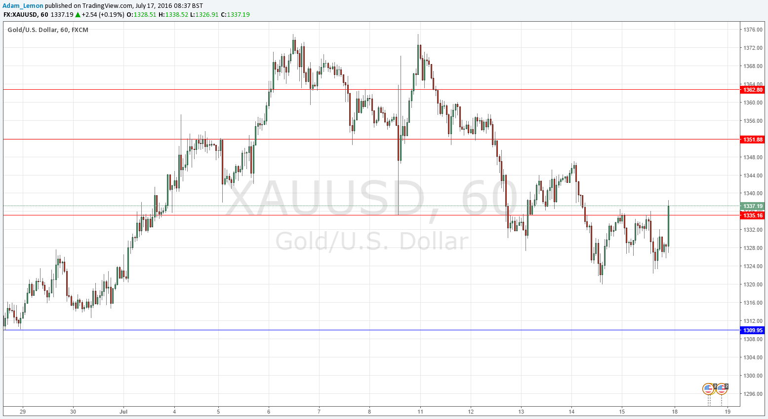 Gold fell fairly strongly but right at the end of the week started to look bullish again, as it broke up above the level at $1335.16 which has twice held as resistance. If the price opens above this level and stays there, it should be a sign that the price is heading for $1350 again at least.