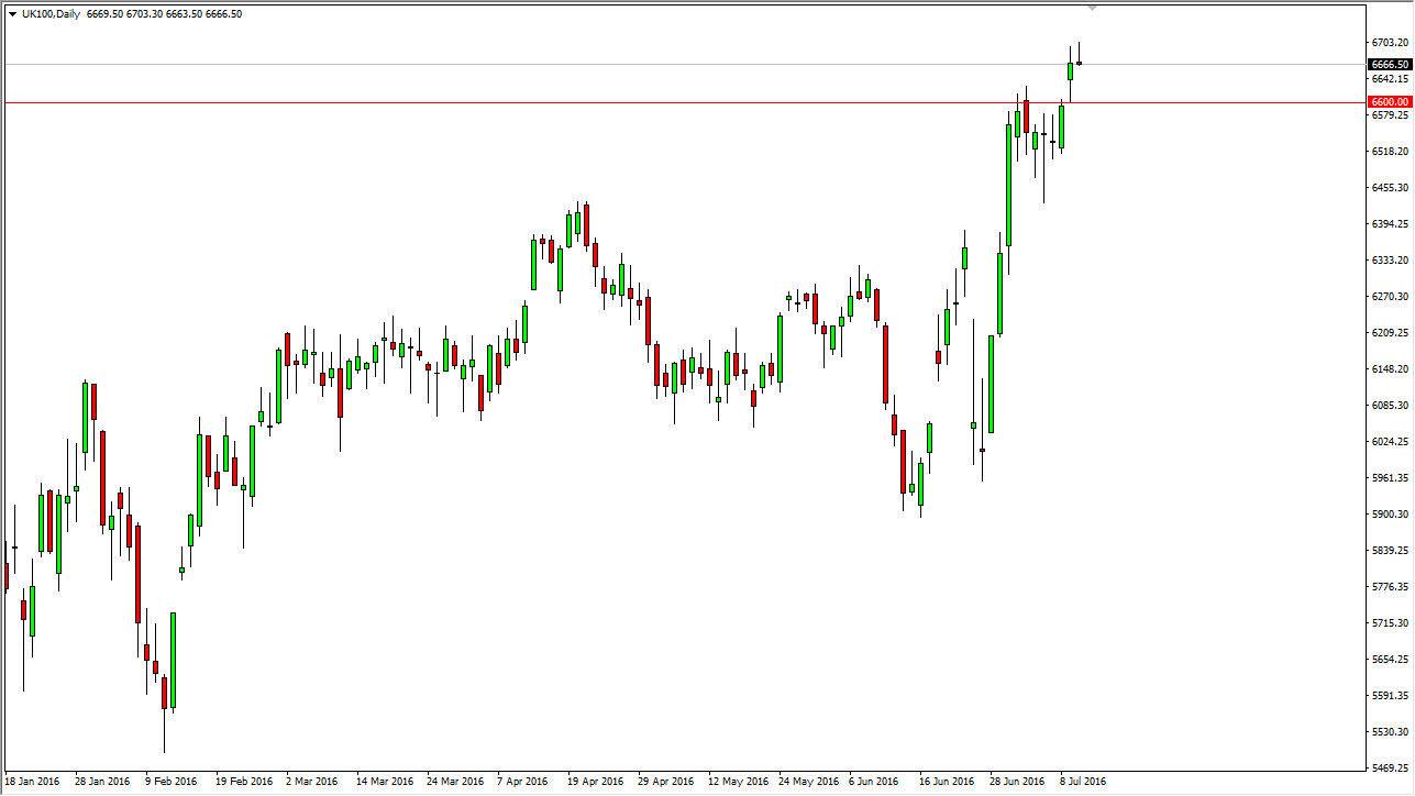 Remember, the FTSE 100 is chock-full of exporting companies, and with the softer than usual British pound, that should help the export markets. Because of this, I believe that the FTSE 100 will continue to gain in the CFD markets, and as a result should be something that you pay quite a bit attention to. In fact, this is one of my favorite CFD markets right now.