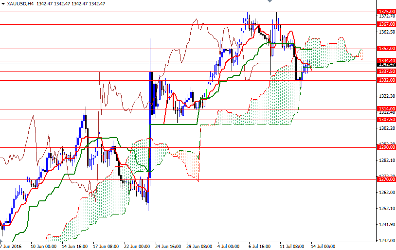 Gold prices ended Wednesday’s session up $8.63, recouping some of the recent losses, as a softer dollar lured bargain hunters back to the market. The XAU/USD pair initially tried to break below the 1332/0 area but found enough support in the vicinity to reverse and test the 1344.40 resistance ahead. Expectations that the Federal Reserve will go easy on raising interest rates, coupled with growing perception that accommodative monetary policies in advanced economies are likely to stay, pushed prices to their highest level since mid-March 2014.