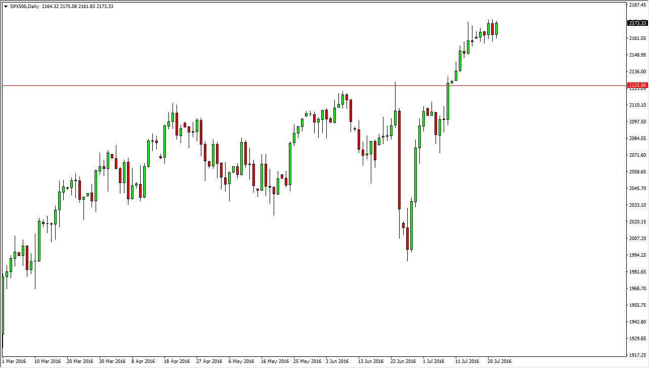 The S&P 500 had a slightly positive session during the day on Friday, as we continue to grind away in this general vicinity. Nonetheless, I am very bullish of this market and have absolutely no interest in selling whatsoever. I believe that the market will continue to find buyers every time we pullback, even all the way down to the 2125 handle at the very least. In other words, I’m very long-term bullish of this market but recognize that we need to either grind away sideways in order to build up momentum, or a pullback to find some type of value in this market. I have a longer-term target of 2250 going forward, and have very little doubt that part of this comes down to the Federal Reserve not been able to raise interest rates anytime soon.