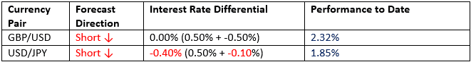 This month we forecasted that the best movements will be short GBP/USD and USD/JPY. The performance so far as follows: