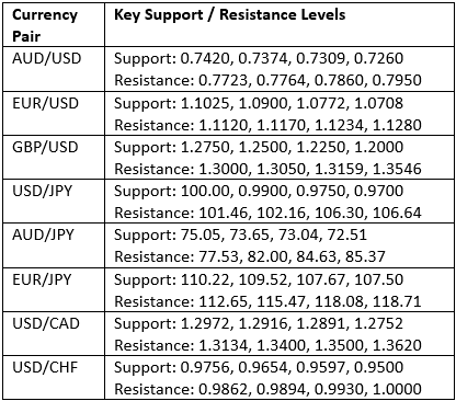 At the FX Academy, we teach that trades should be entered and exited at or very close to key support and resistance levels. There are certain key support and resistance levels that should be watched on the more popular currency pairs this week, which might result in either reversals or breakouts: