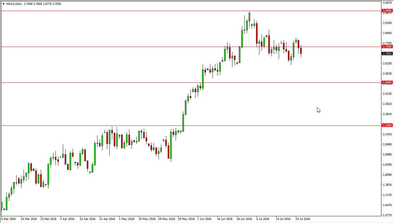 Natural gas markets went back and forth during the day with a slightly negative twist. I still believe that the 2.75 level above is pretty significant at this point in time, and a move above there should send this market higher. We still have to test the 3.00 level given enough time, as typically the larger numbers like that get tested more than once. I have no interest in selling this market, it has been far too bullish and I believe that there is significant support at the 2.60 handle, and of course the 2.50 level which I see as the “floor.”