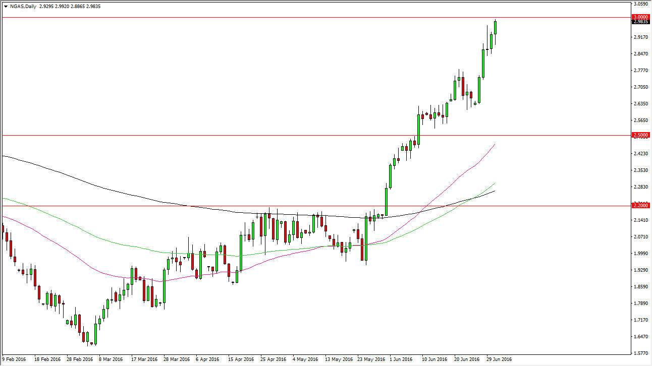 Natural gas markets continue to defy gravity, as we initially fell during the day on Friday, and then shot straight up in the air towards the $3.00 level. It appears to me that the market is hell-bent on testing the $3 handle, and even trying to break above it. Because of this, I believe that it’s only a matter of time before that happens but certainly you cannot buy the natural gas contract until we clear that significant psychological barrier. Pullbacks at this point in time should end up being thought of as “value”, because there is a massive amount of upward pressure underneath. In fact, I don’t even have a scenario in which a willing to sell this contract until we get some type of longer-term sell signal.