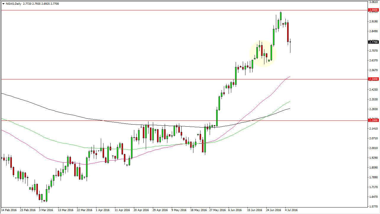 The natural gas markets initially fell during the day on Wednesday as well, but also turned around to form a bit of a hammer like we saw in the WTI Crude Oil market. With this, it’s very likely that the market will try to rally and reach back towards the $3 handle. This is a nice-looking supportive candle at an area where I had been talking about the possibility of supportive pressure as denoted by the yellow ellipse on this chart. I believe that the buyers are going to continue to push, as we have seen so much in the way of an uptrend that we have to retest the $3 level again. If we can break above there obviously that’s a longer-term buy-and-hold situation, but at this point in time I think that traders are going to try to pick up value on pullbacks as they appear. It appears this is one of those times.