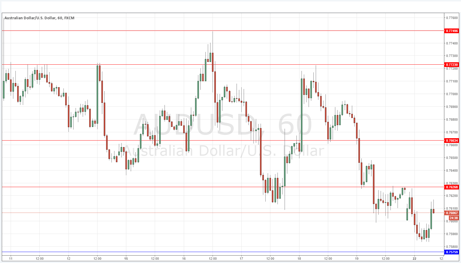 I did not see any support above 0.7600 and that seems to have been a correct assumption.
