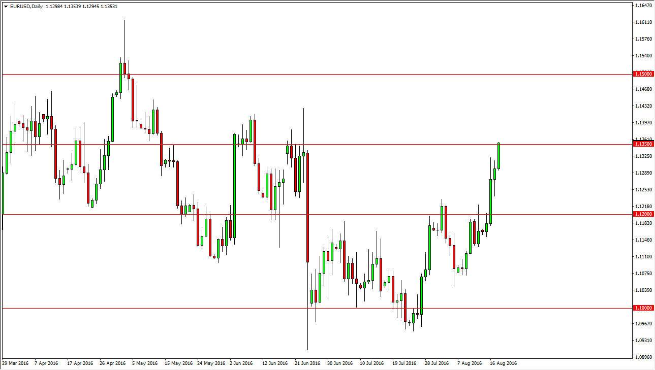 The Euro rose drastically during the session again on Thursday, breaking above the 1.1350 level. By doing so, it shows that we have real strength in this move and it’s only a matter time before we continue to go much higher, I believe that the first area that we are going to reach towards will be the 1.14 level above, and then eventually the 1.15 level. Quite frankly, I am a bit surprised that we have turned around this quickly, but I also recognize that breaking above the 1.12 level below should be massively supportive so therefore this is a “buy only” market at this point in time. I recognize that people are betting on the Federal Reserve not been able to raise interest rates anytime soon, so that’s essentially what this is all about.