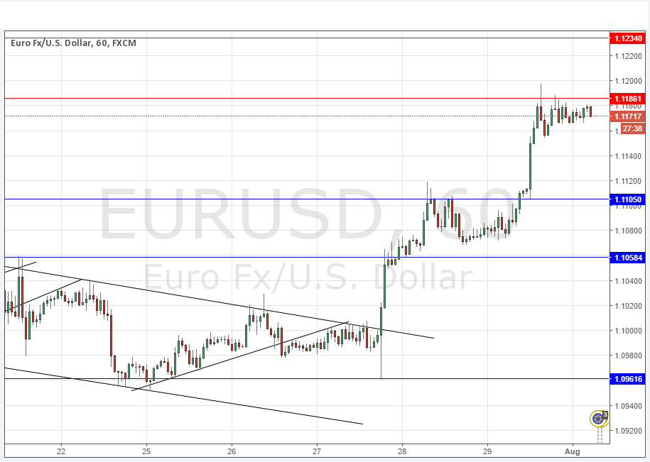 Last week’s poor U.S. GDP data has weighed heavily on the USD and so we have seen a strongly bullish move in this pair as we have almost everywhere against the USD. The price has broken up past a couple of resistance levels and has printed new support at two levels below. As at the time of writing, the resistance at 1.1186 looks quite tough and it might hold today.