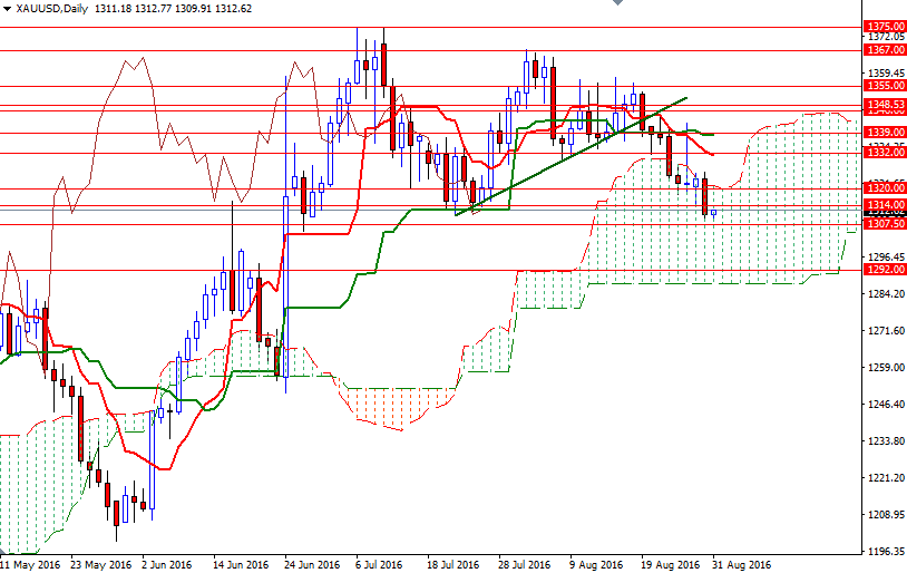 As stated earlier, the 1307.50-1304 area is a strategic place for the bears to conquer, if they intend to test 1300 and 1292. Breaking down below the 1292 level might lead to further downward pressure. In that case, the 1287.40 level where the bottom of the daily cloud sits will be the next stop.
