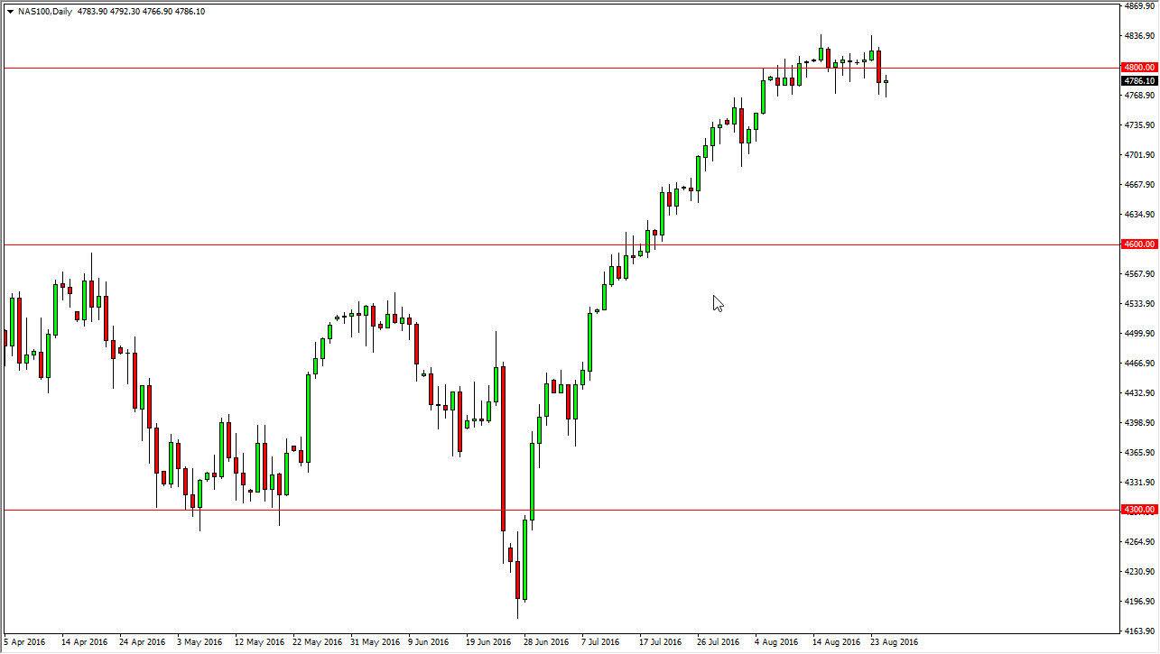 The NASDAQ 100 did very much same thing during the day, initially falling the turning around to form a positive hammer. Because of this, looks like we’re going to continue to consolidate around the 4800 level, which could send this market sideways for the next couple of weeks. I think that there’s plenty of buying to be done underneath, and as a result I think every time we drop you have to be thinking about picking up a small value play for short-term gains. I think once the volume returns the markets though, we will reach towards 5000 which is my intermediate target.