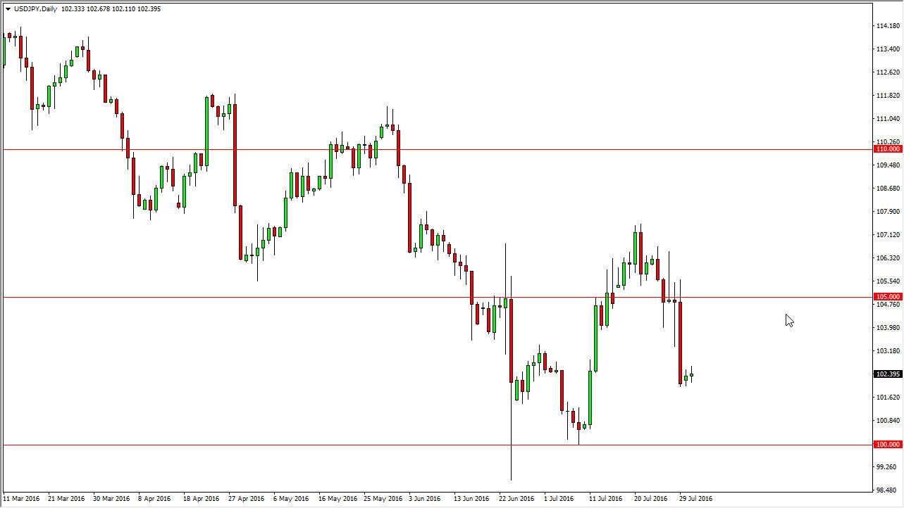 The USD/JPY pair did almost nothing to move the market during the day on Monday. With this, I believe that the market will continue to be very choppy, and perhaps trying to reach down to the 100 level will be what the market does. I think given enough time it will be a market that finds support near the 100 level due to the fact that it was the recent bottom, and of course an area that the Bank of Japan tends to be quite a bit of attention to. They have suggested recently that there might be more quantitative easing coming, and quite frankly it wouldn’t be overly surprising if they got involved in the markets through intervention if we break down below there. Because of this, I believe that it might be a short-term selling opportunity, but quite frankly it’s likely that it is probably much easier to simply wait for supportive candle that we can buy.