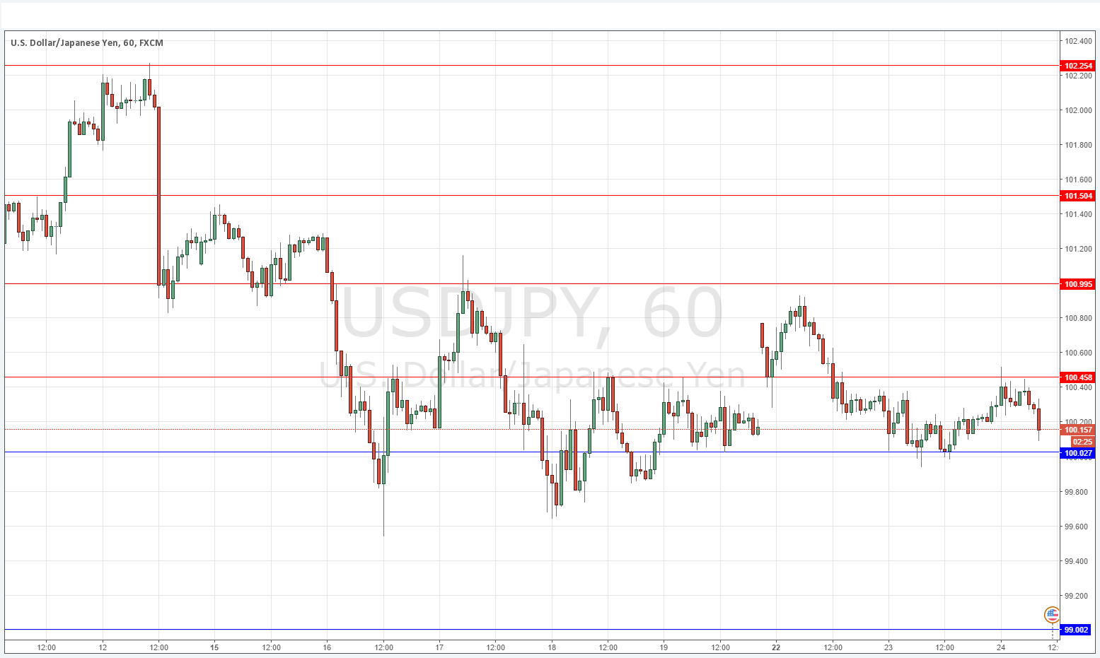 The action has remained choppy although there are clear but very small swings. Essentially the price is stuck in between 100.46 and 100.02 and it will eventually break out. As we already had some good trades off these levels, although these levels are still valid, I would look to the levels beyond these for the next trades, as at the moment the price has gone nowhere for too long and there is bound to be a sudden jump in volatility which makes trading off levels unpredictable.