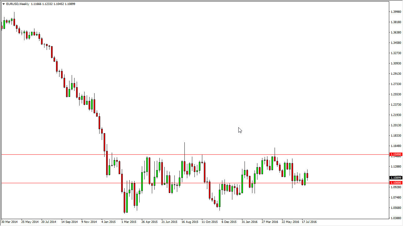 The EUR/USD pair had a slightly negative week over the last 5 trading sessions, but it appears that we are still continuing to bounce around just above the 1.10 level. I expect that every time this market rallies, there will be selling opportunities given enough time. I think that we will more than likely continue to be very choppy, so short-term traders should continue to push the market lower.