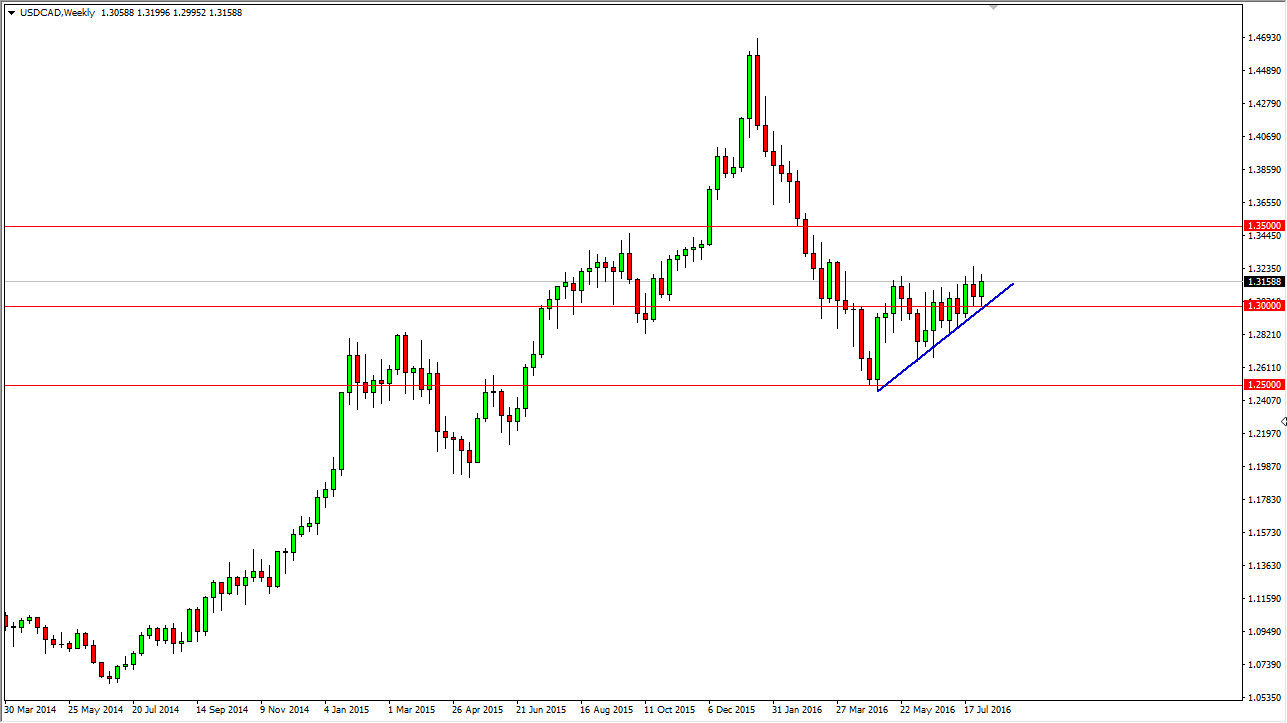 The USD/CAD pair bounced off of the 1.30 level during the course of the week, which of course was also the sign that the uptrend line is still intact. With the oil markets looking soft overall, I believe that this market will continue to be one that you can buy again and again every time it dips a supply “value” going forward and perhaps extending towards the 1.35 level.