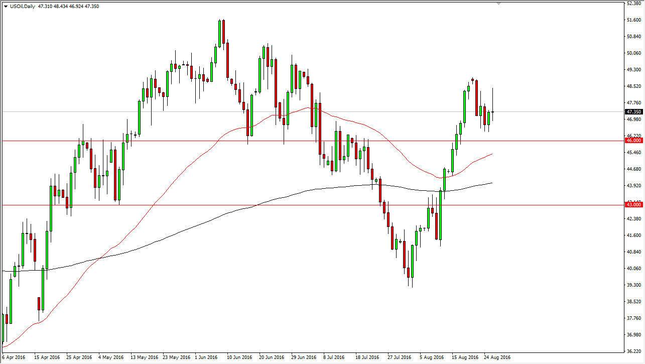 The WTI Crude Oil market initially tried to rally on Friday, but turned right back around to form a massive shooting star. Because of this I think we are going to fall backwards and try to test the $46 level for support. Once we do, I think that the buyers will more than likely come back in. However, we break back down below the $46 level, we could continue to fall from there. Obviously, if we break the top of the shooting star that’s a very bullish sign in changes everything. In the meantime, the one thing I think you can count on is quite a bit of choppiness in this general vicinity.