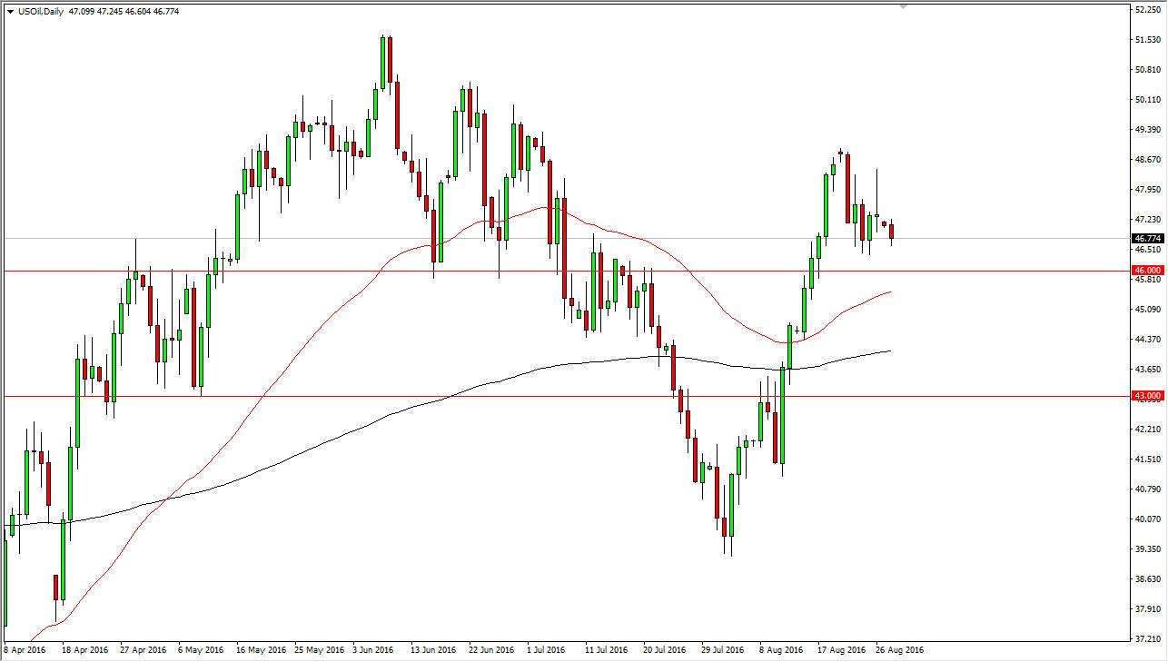The WTI Crude Oil market fell slightly during the course of the session on Monday, as we continue to see quite a bit of volatility. The $46 level below causes quite a bit of support, as we have seen previously, as well as quite a bit of resistance at that level. This is a market that continues to chop around sideways due to the fact that we may have to take a bit of a breather after the recent explosion to the upside. However, I believe that we break down below the $46 level would be a short-term selling opportunity based upon the fact that we formed a shooting star on Friday. On the other hand, if we break above the top of the shooting star, we could continue to go long at that point.