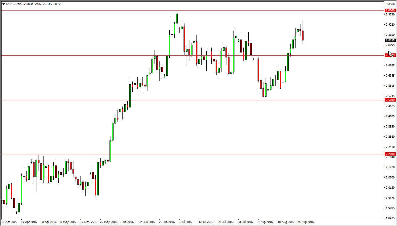 During the day on Tuesday, the natural gas initially tried to go higher as we have seen quite a bit of bullish pressure to go higher in this market. Ultimately, the $2.90 level offered quite a bit of resistance, which makes sense as I can see quite a bit of resistance all the way to the $3 level at this point. However, one of the biggest reasons that this market has gone higher is the fact that the storm season in the Gulf of Mexico looks highly volatile. However, the market looks very likely to be disappointed in higher prices due to the fact that the area could be dealing with massive tropical storms or even hurricanes. However, it now looks as if the major damage could be avoided, which of course disrupts quite a bit of production.