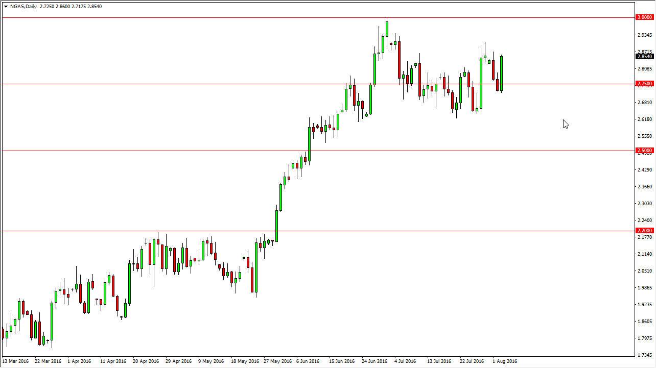 There is more than enough support below to keep this market afloat, so shorting is going to be very difficult to do in the meantime. The $3.00 level above is massively resistive though, so I don’t necessarily think we break above there anytime as well. This is a market that should continue to be attracted to that level, but whether or not we can break above it is a completely different story.