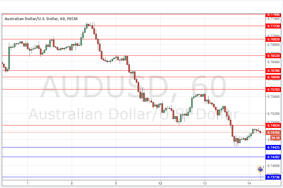 Yesterday’s signals were not triggered as there was no bullish price action at 0.7493 and insufficiently bullish price action at 0.7458.