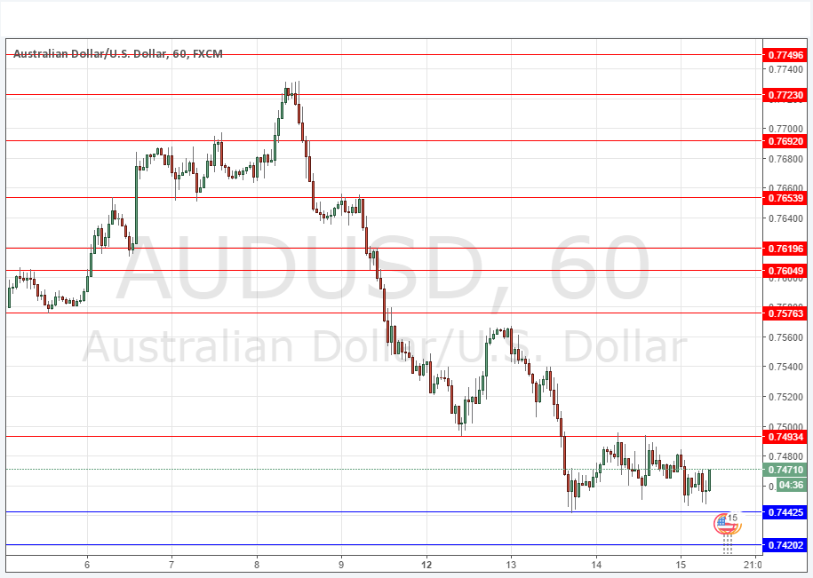 Yesterday’s signals were not triggered as the price action at 0.7493 was insufficiently bearish.