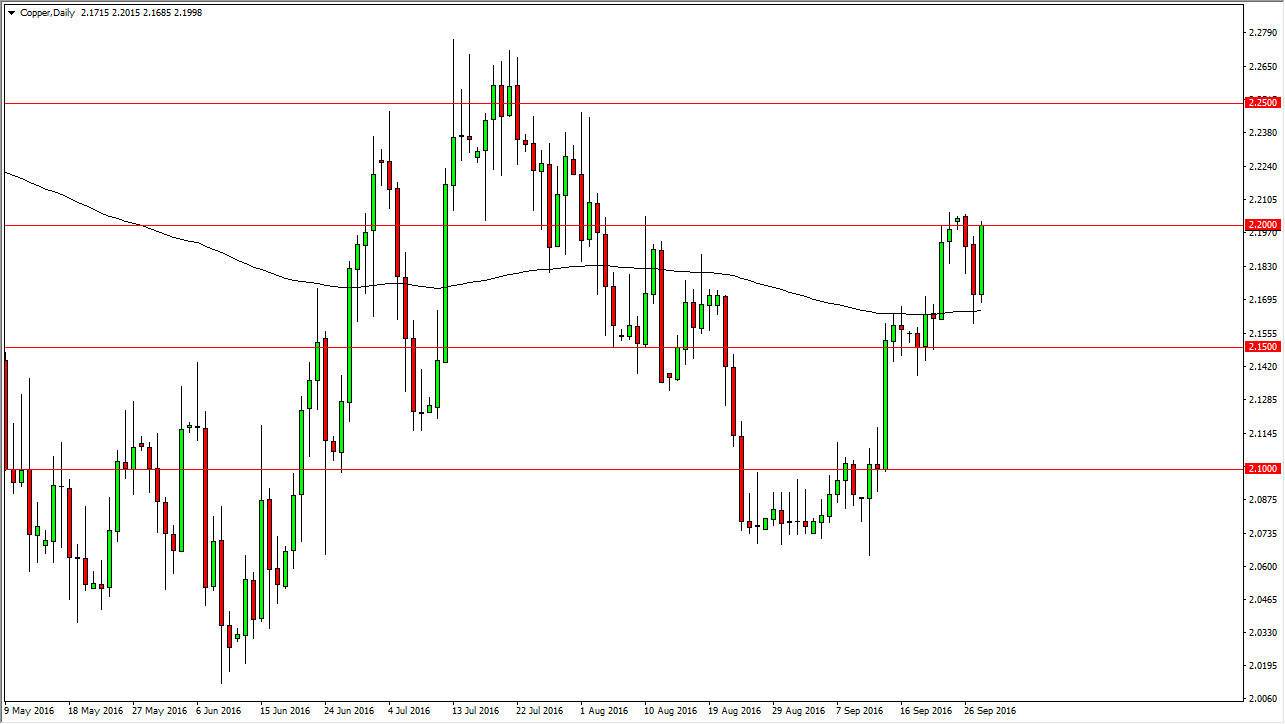 As a bit of a proxy, a lot of traders will use the Australian dollar as it sends so much copper into the Asian region, which of course is the largest consumer of the metal. Ultimately, I think that part of this might be in reaction to the possibility of more stimulus in China, which generally finds itself in the form of building projects. With this being the case, the market will more than likely find buyers every time it dips, and I believe that there’s a bit of a hard floor in the market near the $2.15 level. As long as we can stay above there I think that there are going to be plenty people out there willing to buy.