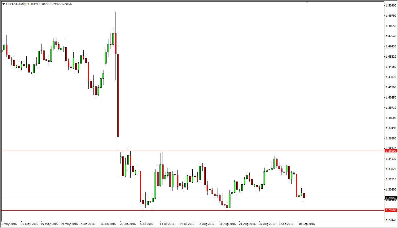 The GBP/USD pair fell on Tuesday, as the US Dollar strengthened a little bit overall. The British pound is still being punished for the “Brexit” vote, so I believe we are going lower. By doing so, I think we will continue down to the 1.2850 level, now that we have broken below the 1.30 level during the day. The 1.30 level is essentially a psychological level more than anything else, as we have broken down below there a couple of times during this consolidation.