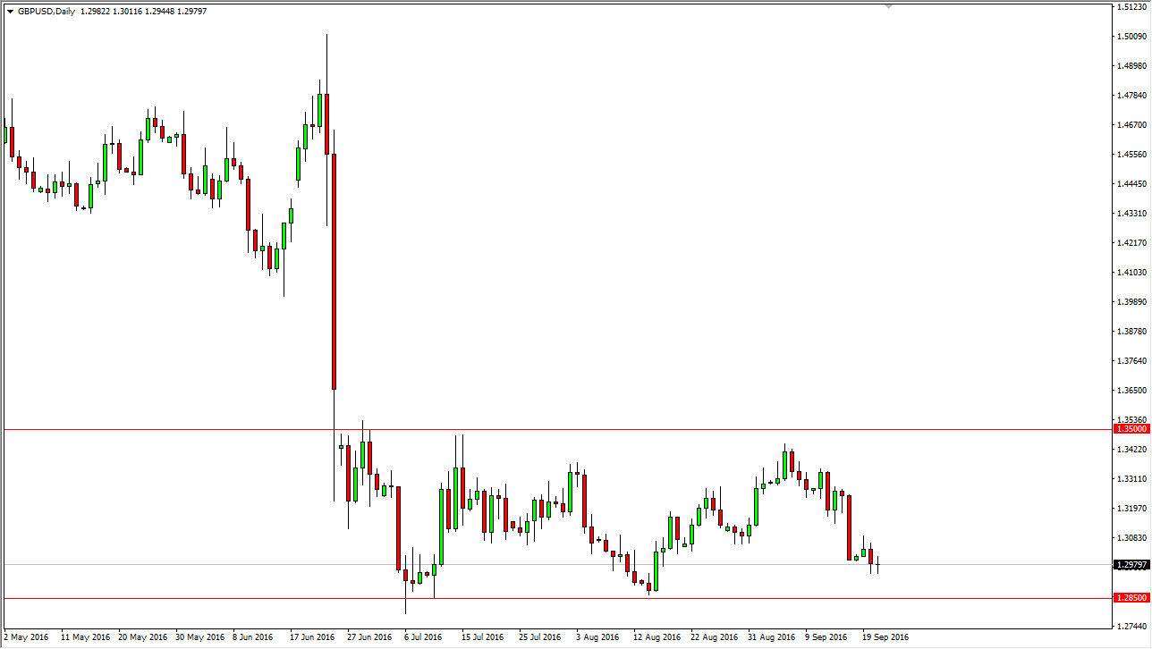 The GBP/USD pair and forth during the course of the session on Wednesday, as we continue to meander around the 1.0 level. We do break down from here should send this market looking for the 1.2850 level below, and as a result it’s likely that the sellers will eventually push this market down to the 1.25 handle. That is a much more significant level for support as far as I can see, so having said that I feel that not only a break down below the bottom of the range for the session on Wednesday is a signal to sell, but I believe that a rally from here will more than likely start to form exhaustion that we could sell from higher levels as well.
