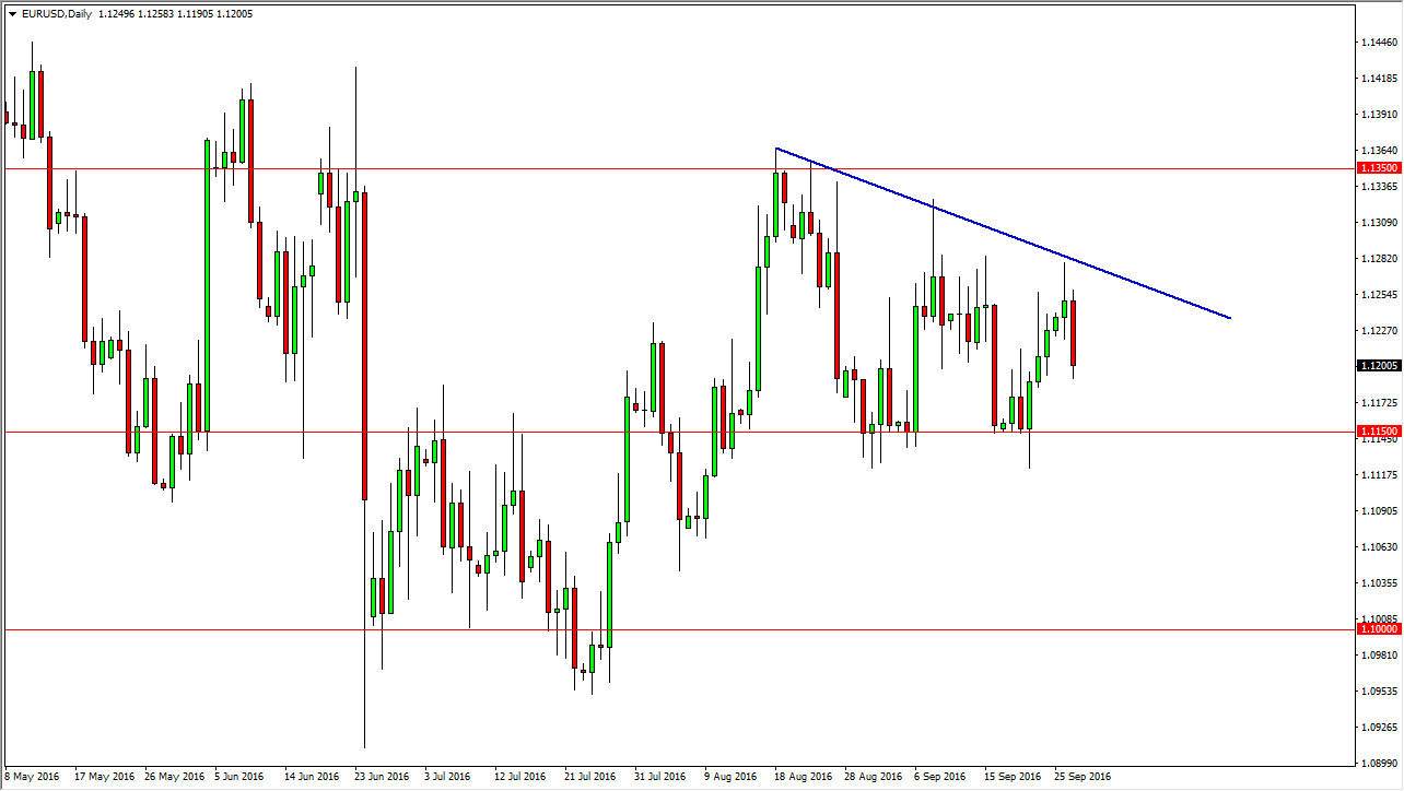 The EUR/USD pair fell rather significantly during the course of the day on Tuesday, testing the 1.12 level. This is an area that is minor support, so quite frankly would not surprise me at all to see this market continue to drop towards the 1.1150 level over the course of the day today, perhaps even testing the 1.11 level after that. Recently, the highs have started to get lower and lower, and there is even an argument for a potential descending triangle. With this in mind, I don’t have any interest in buying the Euro and I believe that short-term rallies will offer exhaustive candles that we can search selling again. With this, I believe that we will eventually break down and start reaching towards the 1.10 level given enough time.