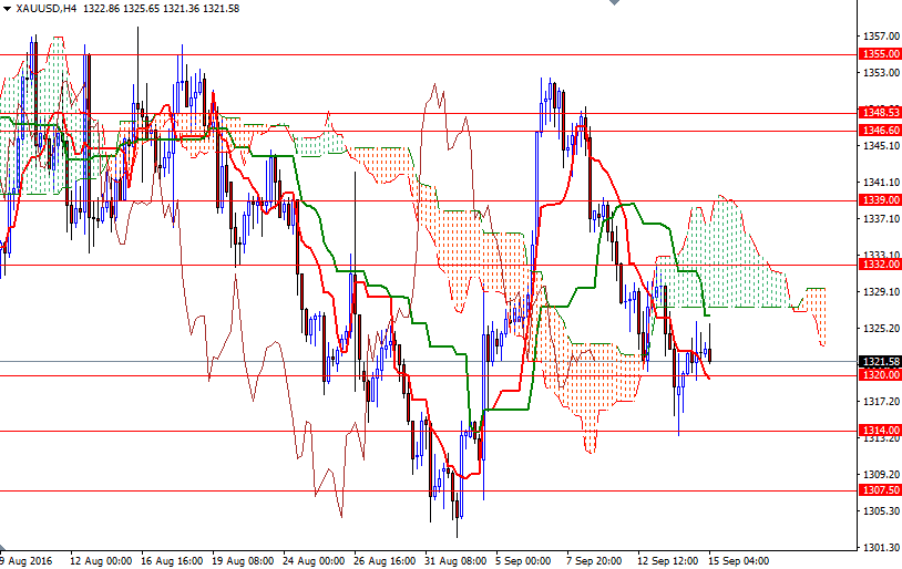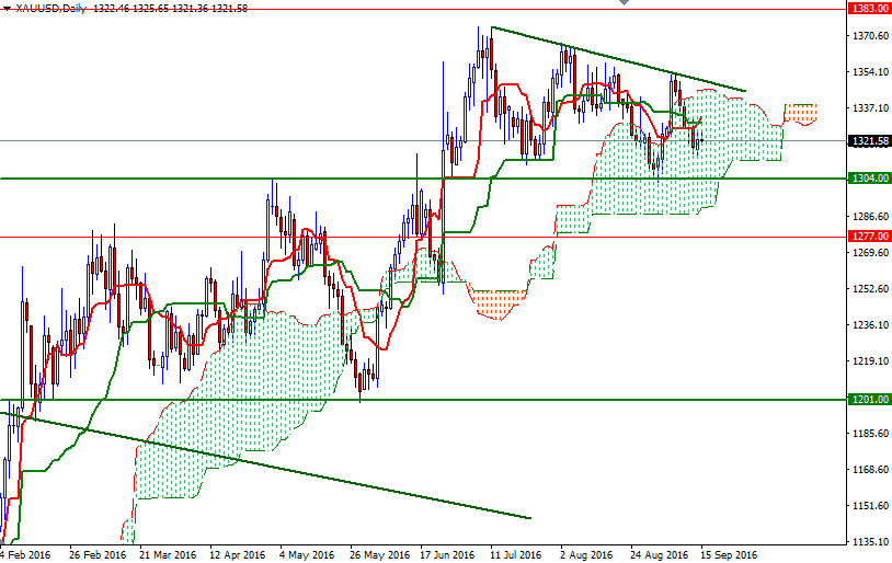Currently the technical outlook is mixed as the weekly, daily and 4-hour charts points to different directions. The XAU/USD pair is trading above the weekly Ichimoku cloud but on the daily time frame we are moving inside the cloud and the 4-hourly cloud right on top of us is creating some extra pressure. Unless the markets climbs back above the cloud on the H4 chart, prices will have a tendency to visit the critical support in the 1304/0 area. But in order to get there, the bears will have to drag prices below the 1310 level first.