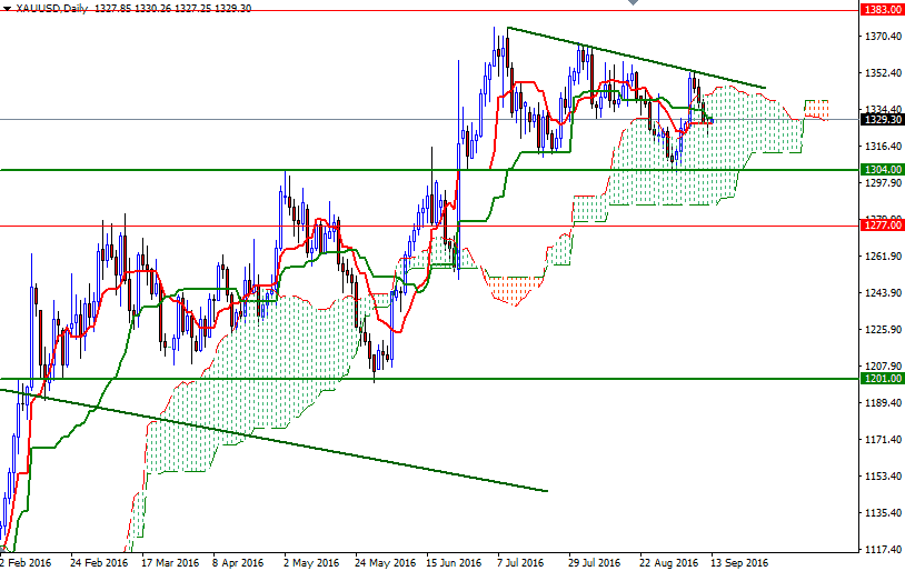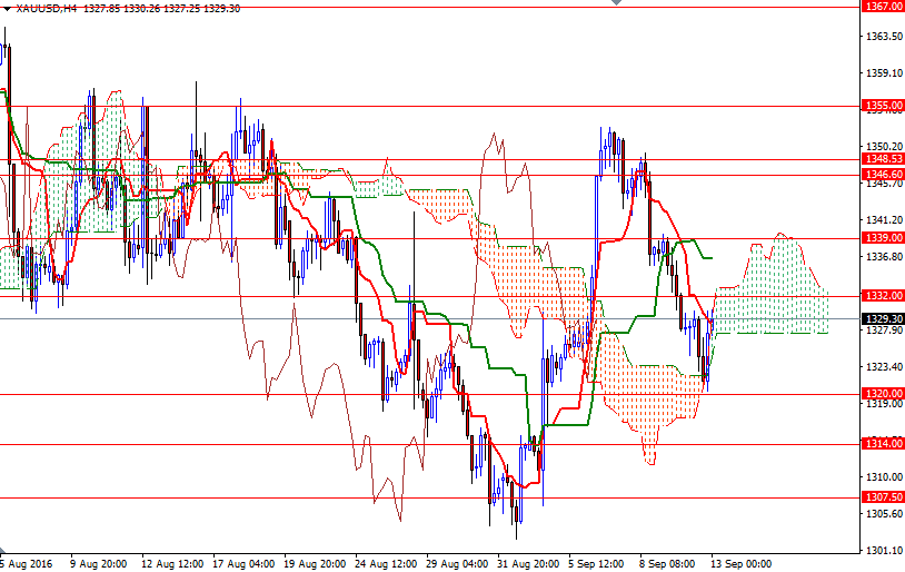 It appears that the market is headed towards the 1332 level which is the first hurdle bulls have to jump. Technically, moving inside the Ichimoku clouds (on both the daily and 4-hourly charts) suggests that the short term trend is flat and the pair is looking for a direction. If prices can break above 1332, then we are likely to proceed to the next barrier in the 1340/39 zone. The bulls have to push prices above 1340 so that they can challenge the bears in the 1348.50-1346.60 area