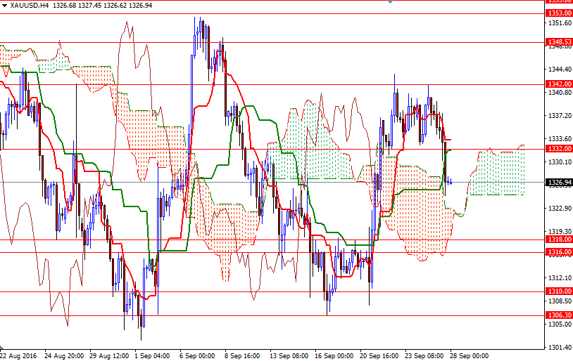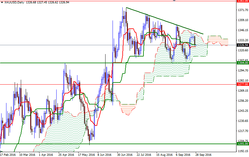Gold prices fell $10.90 on Tuesday, ending a six-day streak of gains, as a firm dollar and the market’s inability to penetrate the $1342 level prompted investors to book profits from a recent rally to a two-week high. Gold’s surge in recent days was mainly driven by the Fed's cautious approach to future interest rate increases. The XAU/USD pair had attempted to climb above the top of the daily Ichimoku cloud but faced significant resistance. As a result, the market came under pressure quickly as expected and retreated to the 1327.40-1324 area where the daily Tenkan-sen (nine-period moving average, red line) and the Kijun-sen (twenty six-period moving average, green line) resided.