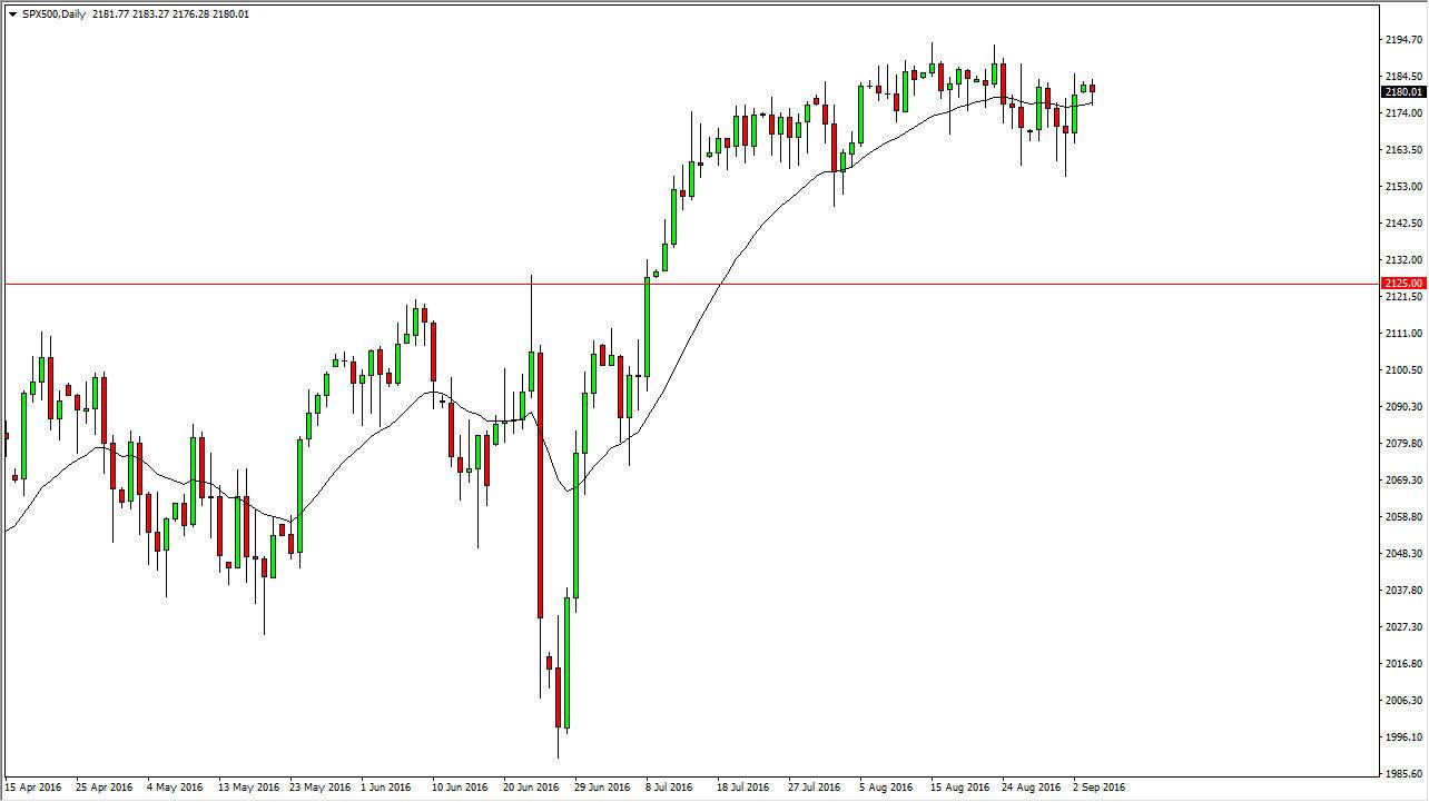 Obviously, the S&P 500 didn’t do anything during the day on Monday as Americans and Canadians step away for the Labor Day holiday. However, we recently seen this market go sideways for some time now, and it looks as if we are trying to build up enough momentum to continue going higher. A pullback from here should find plenty of support near the 2050 handle, and as a result it’s likely that the market falling is simply going to be an opportunity to pick up value and a market that I think goes higher due to interest-rate expectations being so low. With this, it’s likely that we will try to reach towards the 2250 level given enough time and I do have that as my target going forward.
