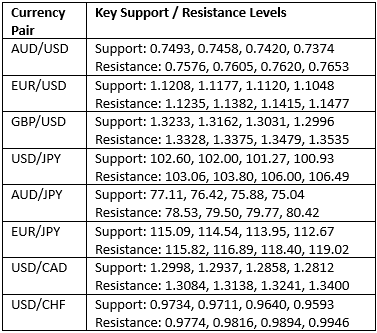 Key Support/Resistance Levels for Popular Pairs