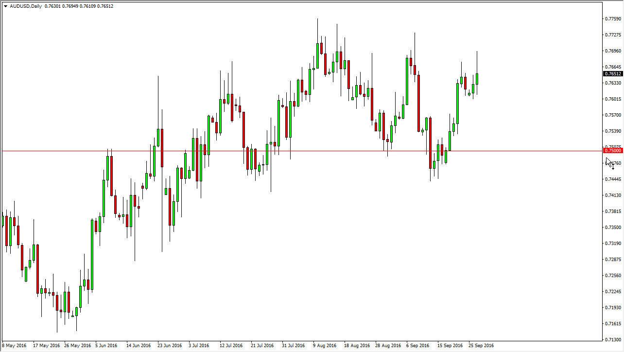 The Australian dollar rally during the day after initially falling on Tuesday, but as you can see gave up quite a bit of momentum once we got to the 0.77 handle. The biggest problem I have with this market is that there is simply far too much noise above to continue going higher with any type of momentum. Because of this, I believe that we will eventually break down below the bottom of the candle for the session on Tuesday, and that could be a selling opportunity. I wouldn’t risk shorting this market quite yet though, I would need to see that break down in order to put actual money to work. At that point in time, I would anticipate a move down to the 0.75 handle as it seems to be relatively important.