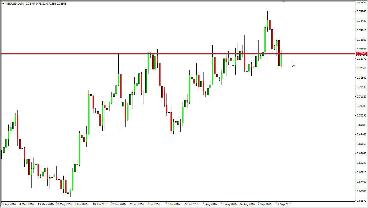 The New Zealand dollar rallied during the day on Wednesday, slamming into the 0.73 handle. This is an area that has previously been massively resistive, and as a result it’s not a surprise to see that the sellers got involved again. At this point in time, I anticipate that short-term exhaustion will be the way to start selling this market, and as far as buying is concerned I’m not necessarily interested in doing so until we get above the top of the impulsive candle from the Tuesday session. At that point in time, I would anticipate that the New Zealand dollar within reach towards the 0.75 handle.