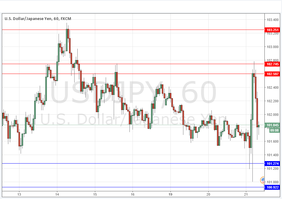 Yesterday’s signals may have produced both long and short profitable trades, with the key resistance level at 102.60 holding after the identified support level at 101.27 also held earlier. There is a very strong probability that it would be a good idea to exit any open trades sitting in profit, as the FOMC release approaches.