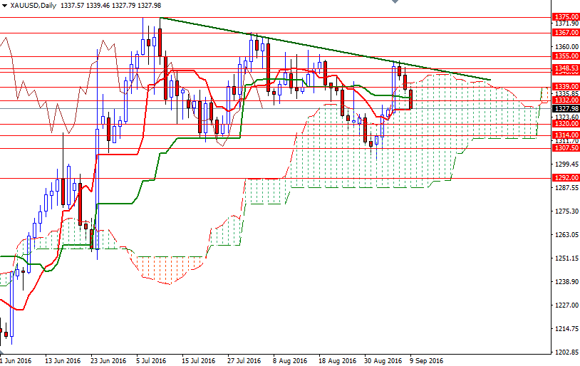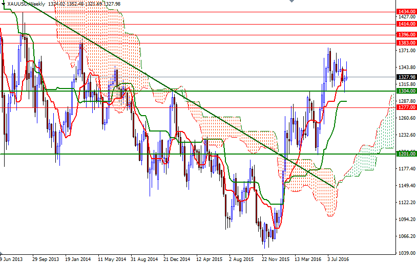 Gold prices fell $9.59 on Friday, down for the third straight session to $1327.98 an ounce, as concerns that an interest rate increase may come sooner than expected and a strengthening dollar weighed on demand for the precious metal. The XAU/USD pair initially climbed above the $1332 level and reached the $1355/2 zone but the market reversed its course after the bulls failed to overcome this barrier. As a result, prices dropped back below $1332 and headed towards the support at around the $1327 level.